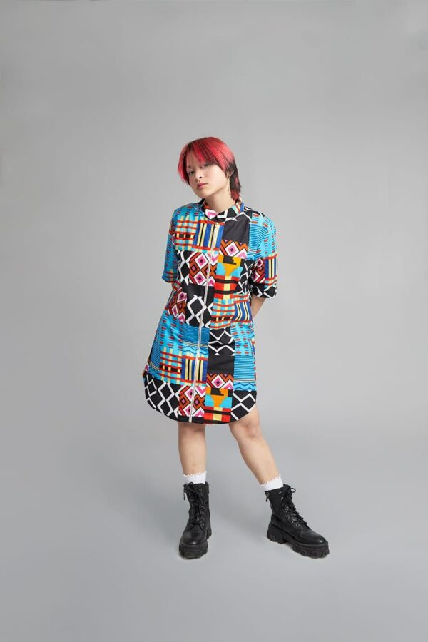 100% ALGODÓN VESTIDO CAMISERO , CUELLO MAO 2 BOLSILLOS CREMALLERA FRONTAL
